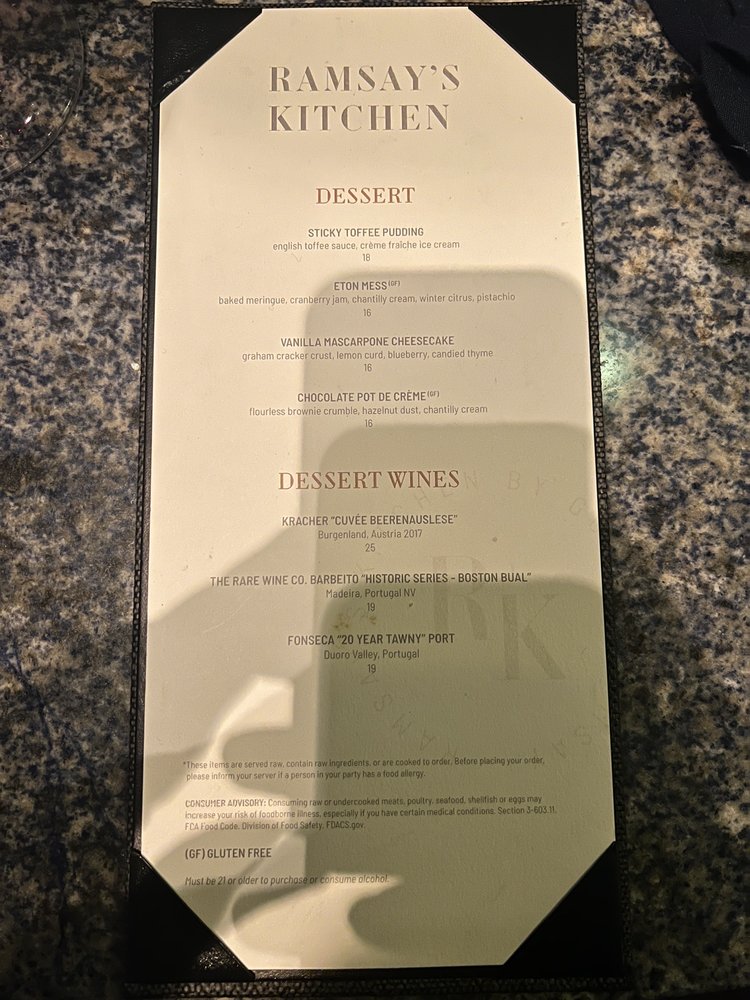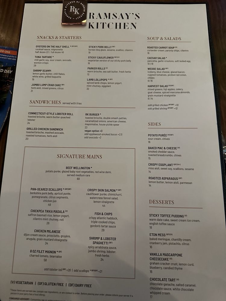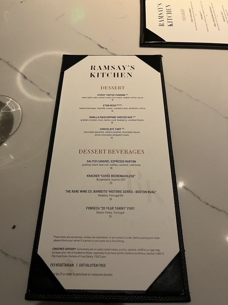 At Ramsay's Kitchen on Boylston St in Boston, you can expect a classy dining experience with delicious options for breakfast, including classic American dishes like Buttermilk Pancakes and Avocado Toast. The breakfast mains offer a variety of pastries and baked goods. Customers praise the fresh and well-prepared food, with highlights such as oysters, petite beef Wellington, and sticky toffee pudding. The restaurant's upscale ambiance, attentive service, and beautiful decor make it a great choice for intimate dinners or larger gatherings. While prices may be on the higher side, the quality of the food and overall experience make Ramsay's Kitchen a must-visit spot in Boston's Back Bay area.